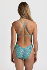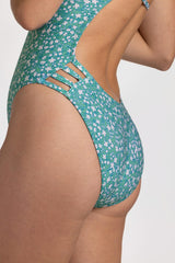 The Julian is a fixed-back one piece swimsuit with a criss-cross strap along the back and a four-band cut out detail along the hip. The strap is designed as one continuous band, which allows flexible distribution of tension along the shoulders and back during your water workout.